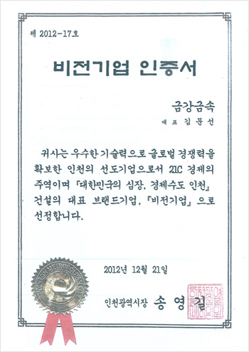 비전기업 인증서